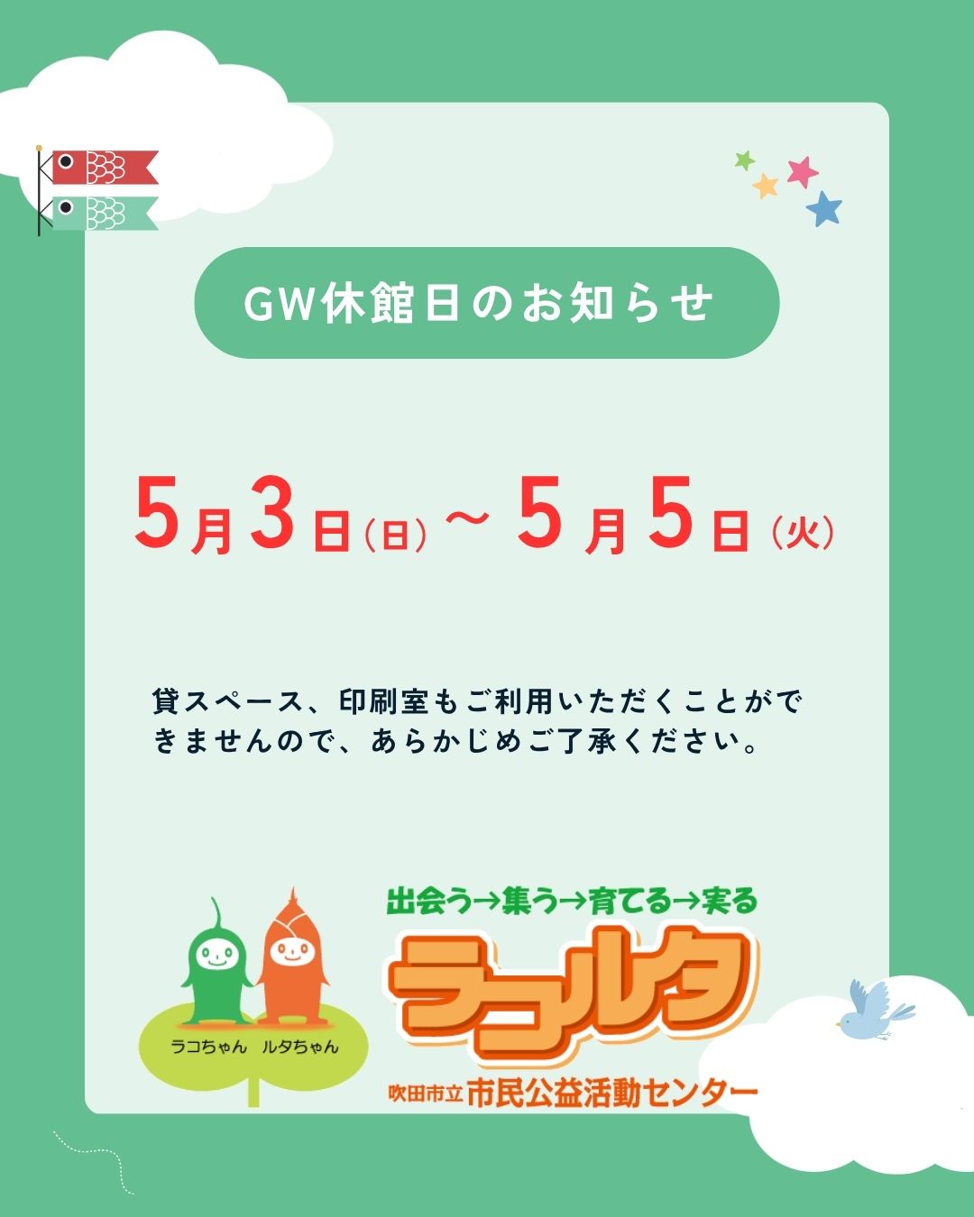 ゴールデンウィークの休館日について